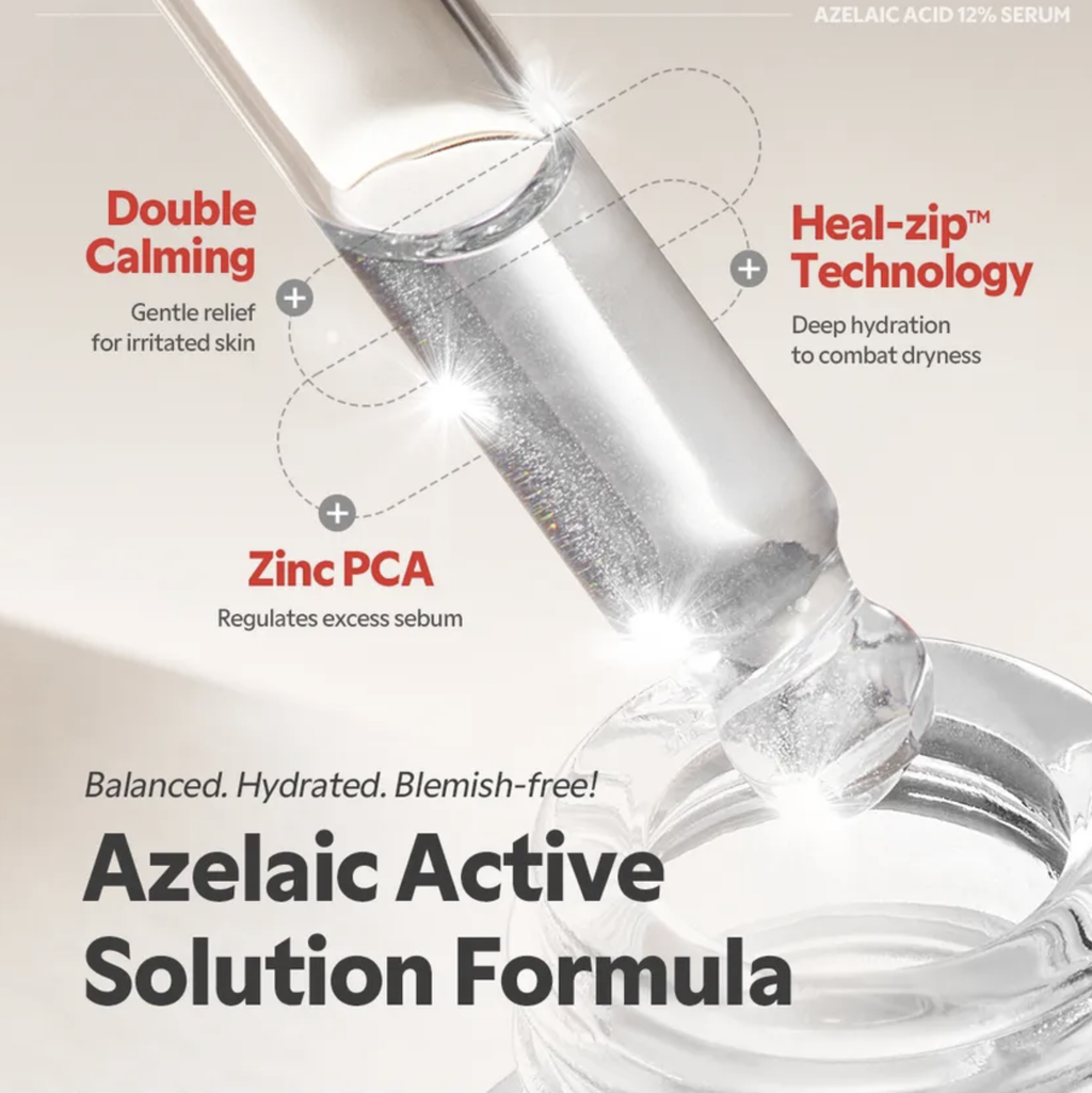 A multi active serum for blemish-prone skin with 12% Azelaic Acid that calms stressed skin and brightens uneven spots.