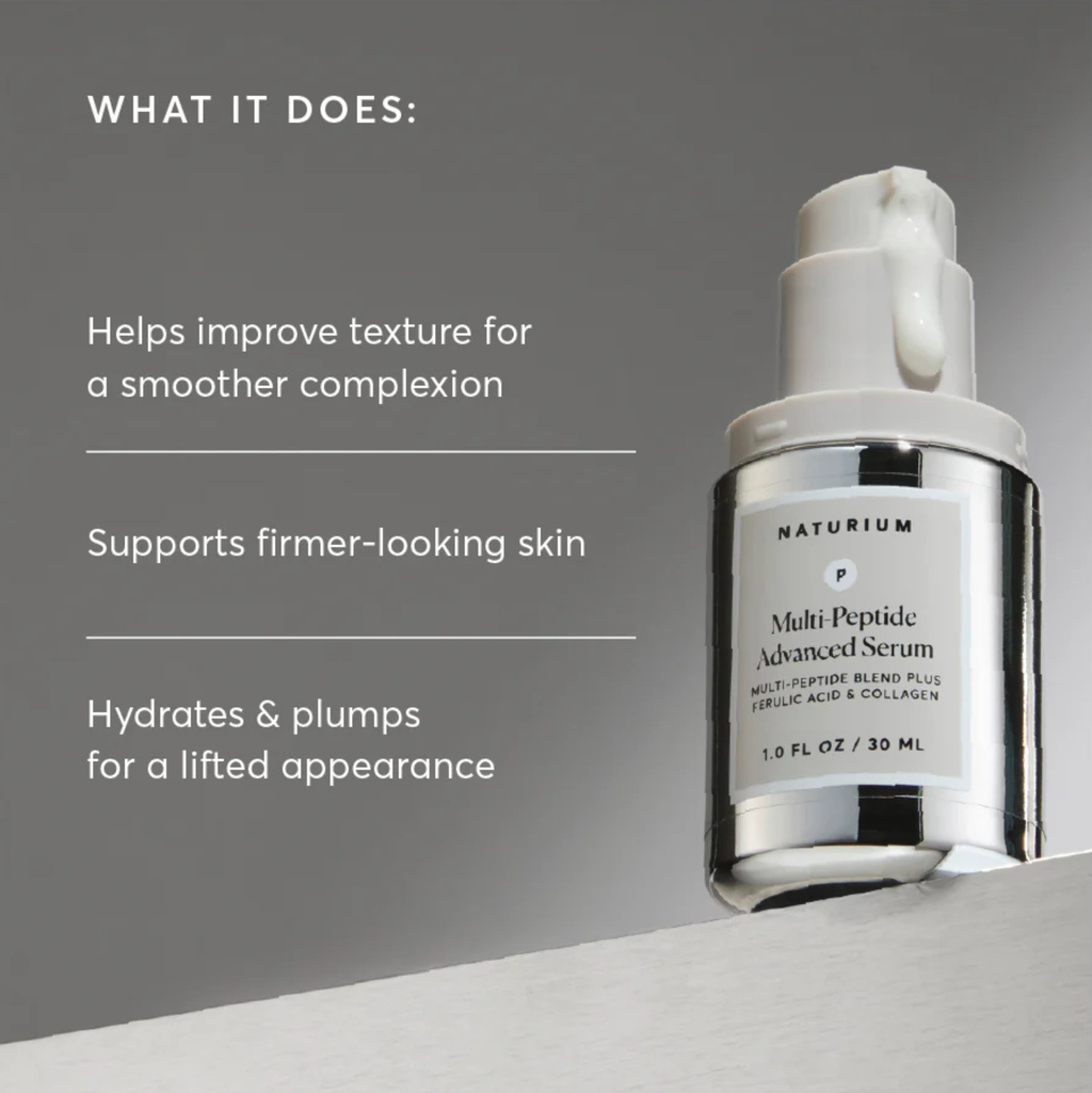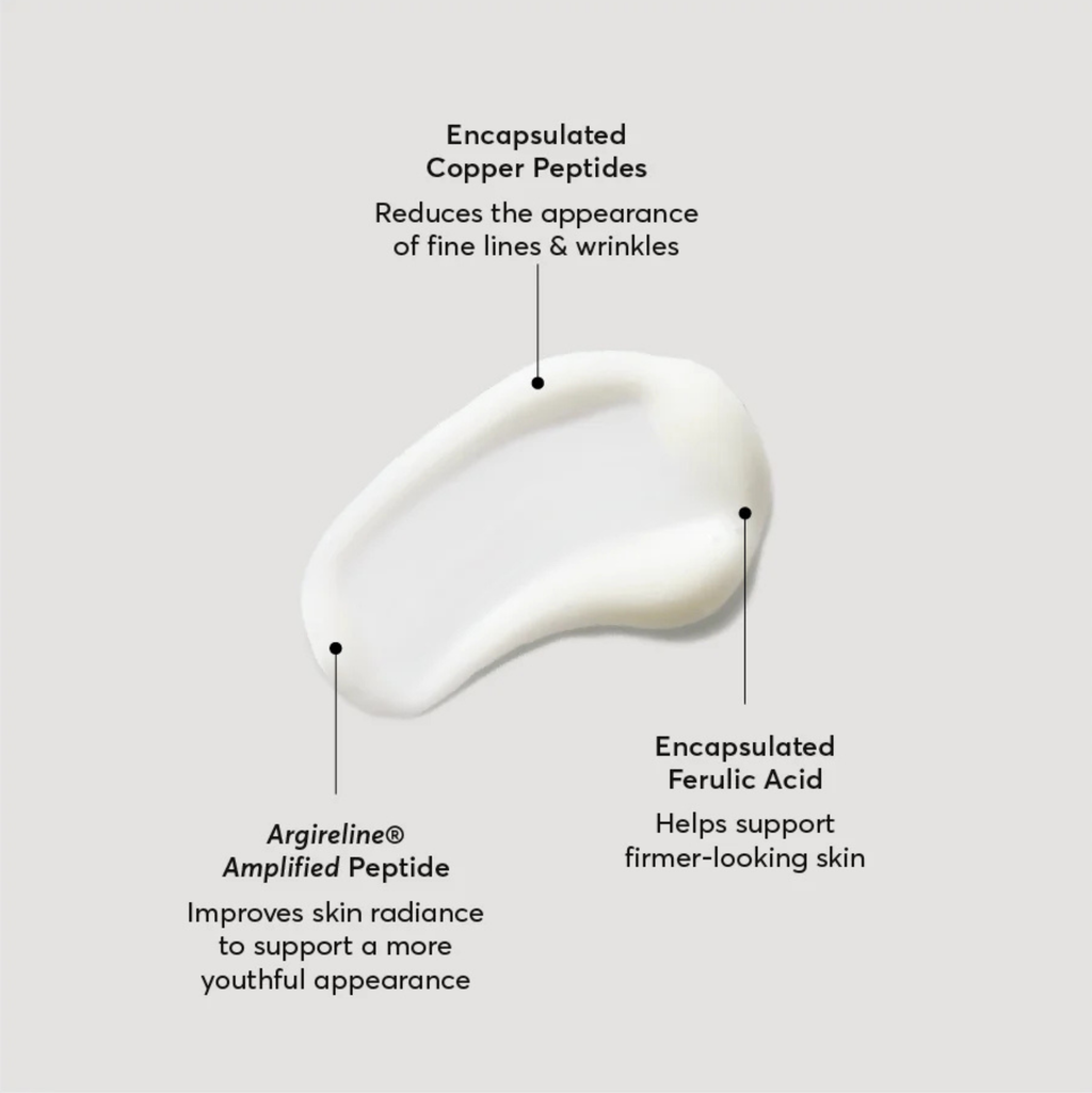This powerful serum is formulated with an advanced multi-peptide blend, including encapsulated Copper Peptides and Argireline® Amplified Peptide, to improve texture and reduce the appearance of fine lines and wrinkles. Plus, encapsulated Ferulic Acid and Collagen help firm skin's appearance to support a more youthful-looking complexion.