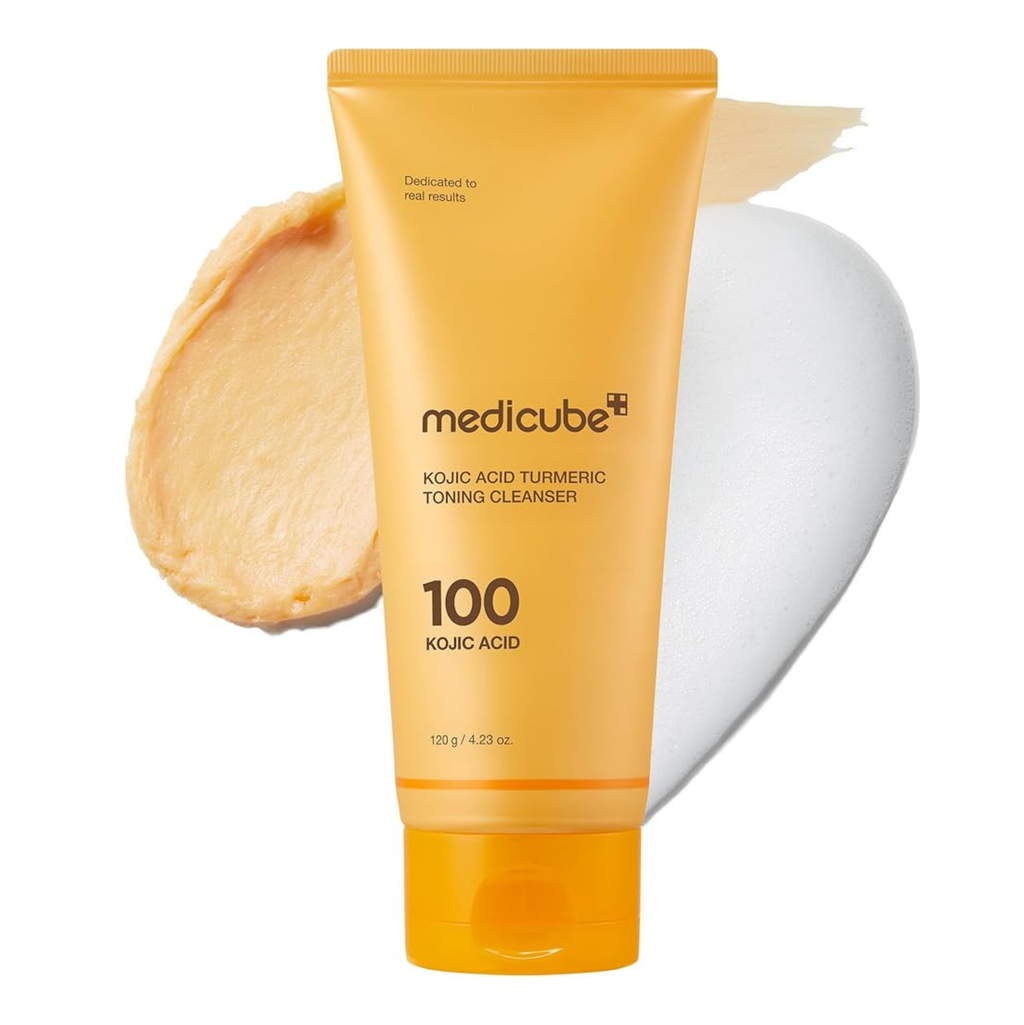 Medicube Kojic Acid Turmeric Toning Cleanser combines two potent botanical actives to gently cleanse while addressing uneven skin tone. Kojic Acid works to fade dark spots and hyperpigmentation, while Turmeric provides antioxidant and anti-inflammatory benefits. This formula removes impurities and makeup without over-stripping, making it suitable for daily use.