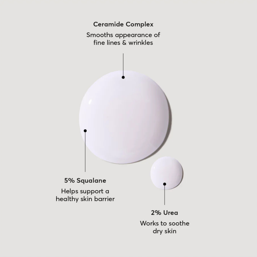 This advanced skin hydrator is an oil-serum formulated with 5% Squalane, 2% Urea and a Ceramide Complex to support a healthy skin barrier. This nourishing formula plumps, brightens and hydrates skin for a glowing complexion.