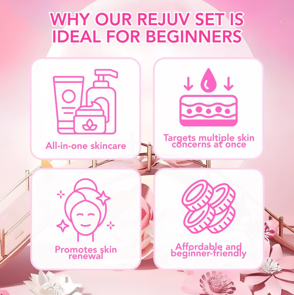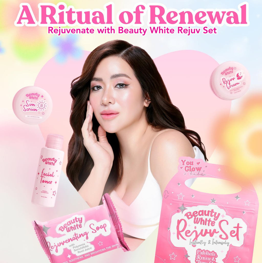 Beauty White Rejuvenating Set will lighten dark spots and acne marks, smoothen your face, unclog and lessen open pores and prevent acne. This set gently peels away the top later of the skin, revealing fairer, smoother, and renewed skin.