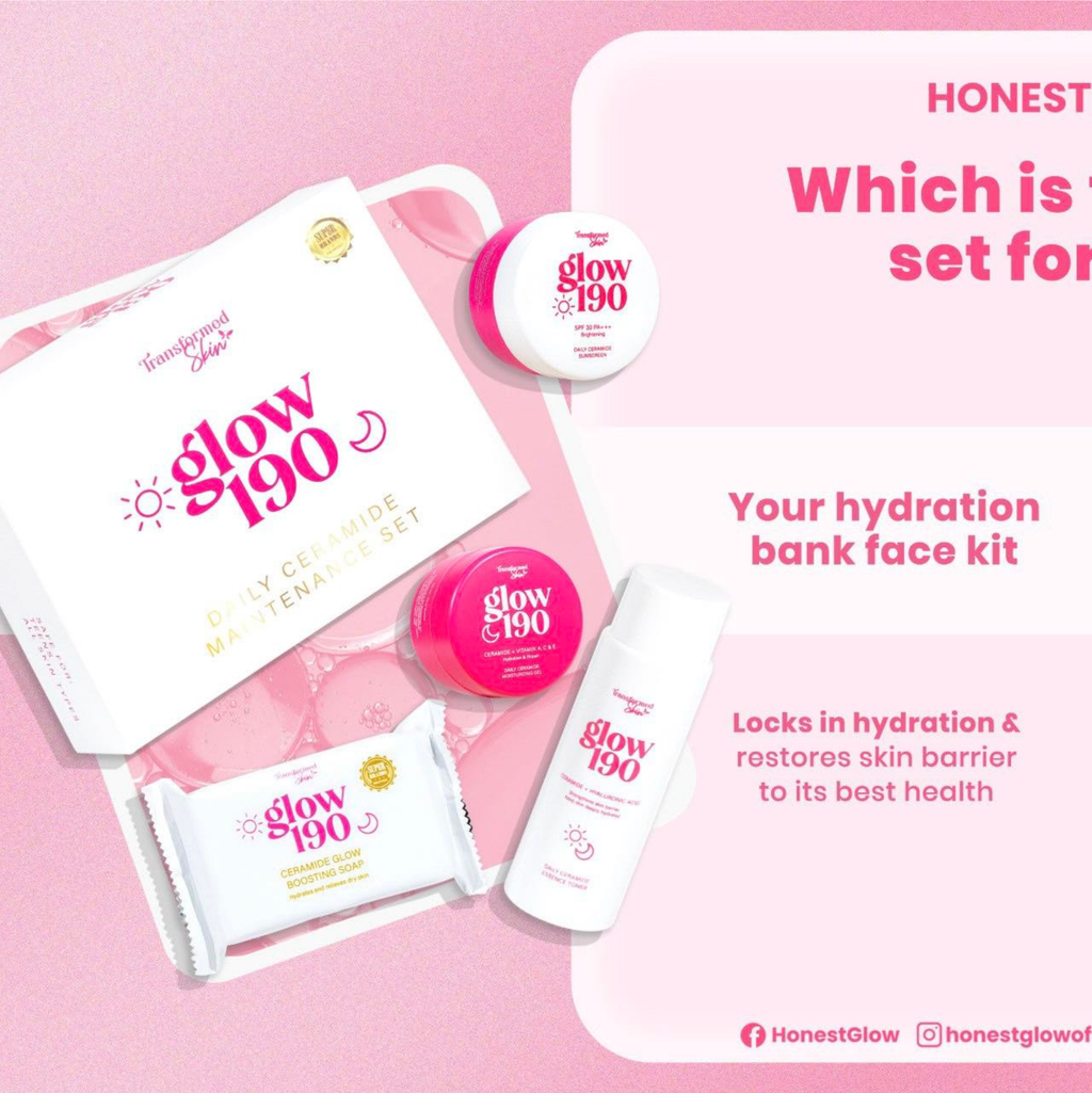 - Glow 190 Daily Ceramide Essence Toner 60ml x 1pc - is hydrating, skin-repairing toner that nourishes weak, dry skin making sure it stays soft anf supple. Key ingredients: Niacinamide, Arbutin, Aloe Vera Leaf Extract, Centella Asiatica Extract, Hydrolyzed Collagen, Salicylic Acid, Ceramide and Glycolic Acid.