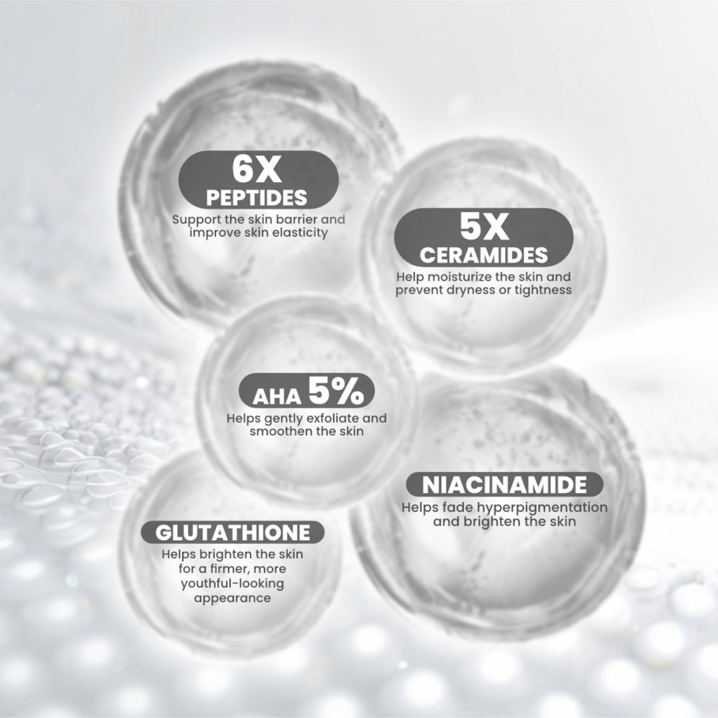 Water, Mandelic Acid, Niacinamide, Dipropylene Glycol, Polyacrylate Crosspolymer-6, Glycerin, Propanediol, Trehalose, Bambusa Vulgaris Extract, Chenopodium Quinoa Seed Extract, Rosa Davurica Bud Extract, Butylene Glycol, t-Butyl Alcohol, Citric Acid, Lactic Acid, 1,2-Hexanediol, Ulmus Davidiana Root Extract, Pueraria Lobata Root Extract, Pinus Palustris Leaf Extract, Oenothera Biennis (Evening Primrose) Flower Extract, Hippophae Rhamnoides Fruit Extract, Glycolic Acid, Hamamelis Virginiana (Witch Hazel) Leaf Extract, Salvia Officinalis (Sage) Leaf Extract, Melaleuca Alternifolia (Tea Tree) Leaf Extract, Hypericum Perforatum Extract, Backhousia Citriodora Leaf Extract, Uncaria Tomentosa Extract, Caprylic/Capric Triglyceride, Ceramide NP, Adansonia Digitata Seed Oil, Aloe Barbadensis Leaf Extract, Hydrogenated Lecithin, Melaleuca Alternifolia (Tea Tree) Extract, Tocopherol, Ceramide NS, Ceramide AS, Polyglyceryl-10 Laurate, Ceramide EOP, Ceramide AP, Glutathione, Sodium Hyaluronate, Palmitoyl Tripeptide-1, Palmitoyl Pentapeptide-4, Hexapeptide-9, Acetyl Hexapeptide-8, Tripeptide-1, Copper Tripeptide-1, Propylene Glycol, Caprylyl Glycol, Ethylhexylglycerin, Xanthan Gum, Disodium EDTA, Potassium Hydroxide.