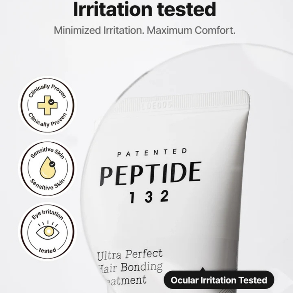 Formulated with our exclusive Tripeptide Complex, PEPTIDE-132 targets damaged keratin for intensive bond repair. Acting like a puzzle piece, it bonds to weak keratin structures — repairing breakage, minimizing split ends, and reinforcing each strand. A game-changer for those seeking an advanced anti-breakage hair product. Enriched with Collagen and Hyaluronic Acid, it helps prevent breakage and leaves hair feeling nourished, soft, and resilient after every use.  Infused with nourishing and protein recharging ingredients like Amino Acids, Ceramides, Panthenol, Biotin, and 7 plant-based oils.