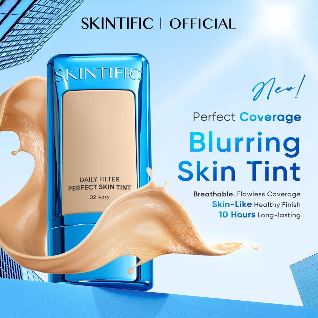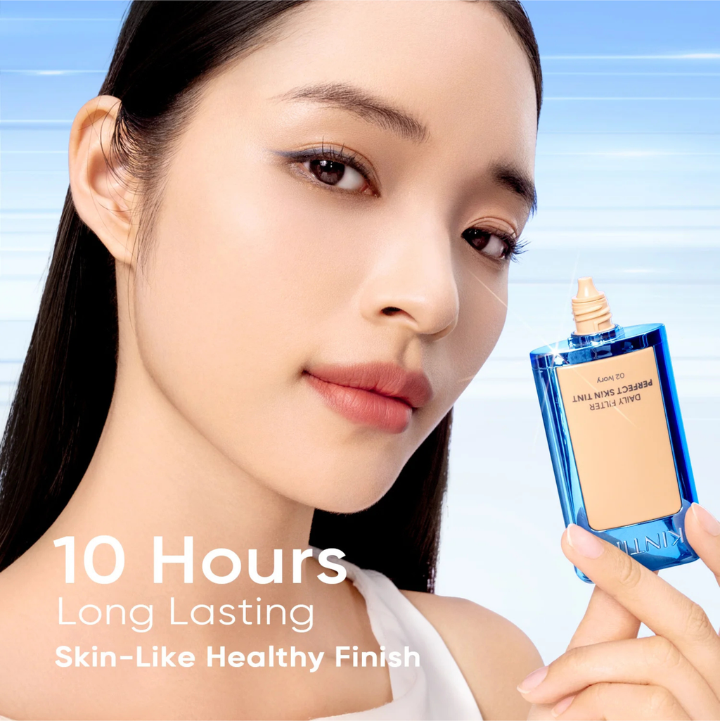 Offering lighter coverage than foundation plus a more intense brightening effect compared to a tone-up cream, the Daily Filter Perfect Skin Tint hits that perfect sweet spot, right in the middle. With air-breathable technology, forms a creamy lightweight texture with perfect coverage for natural skin-like finish. Seamlessly blends into to the skin, gives smooth, velvety finish without feeling heavy. Locks makeup for 10H without being cakey or creasing with smooth protective film.
