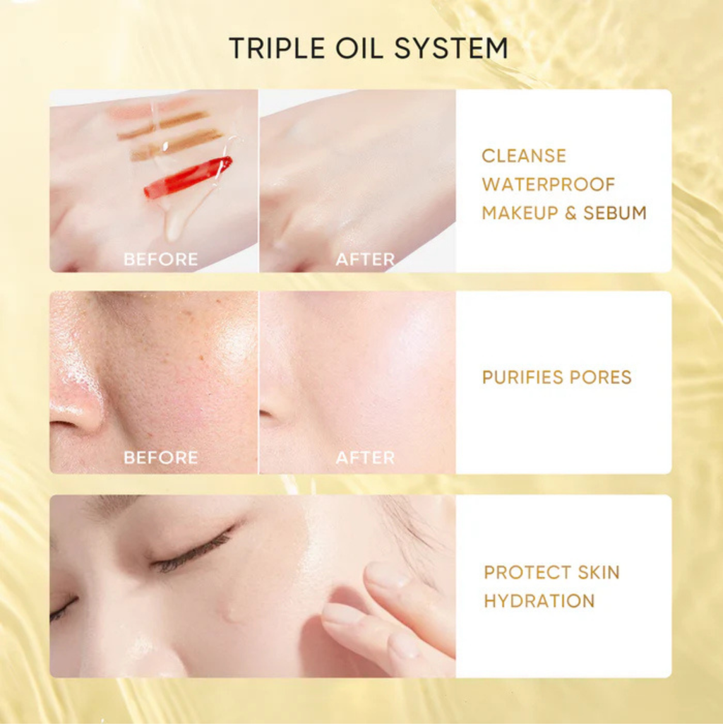 Put an appropriate amount of cleansing oil onto dry hand, gently massage onto dry face, emulsify with water, rinse off thoroughly.