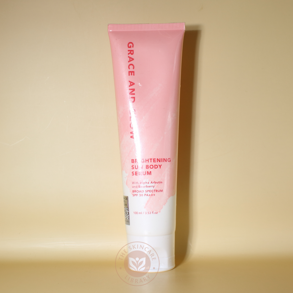 Grace and Glow Brightening Sun Body Serum is formulated with the combination of Alpha Arbutin and Bearberry Extract that work to help protect the skin from premature aging caused by the bad effects of sun exposure. Enriched with luxurious fragrance for an ultimate experience throughout the day. Hybrid sunscreen.
