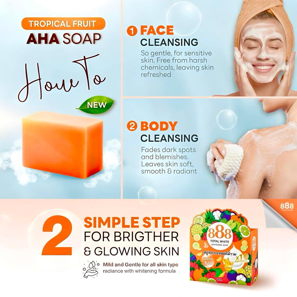 Achieve a luminous complexion with 888 Total White Whitening Soap, formulated to gently cleanse while promoting a brighter, more even skin tone. This whitening soap bar combines effective whitening actives with nourishing ingredients to support your daily skincare ritual. Ideal for those seeking visible radiance and a refined appearance, this soap works to diminish the appearance of dark spots and discoloration. Experience the transformative power of professional-grade cleansing in a luxurious, compact format.